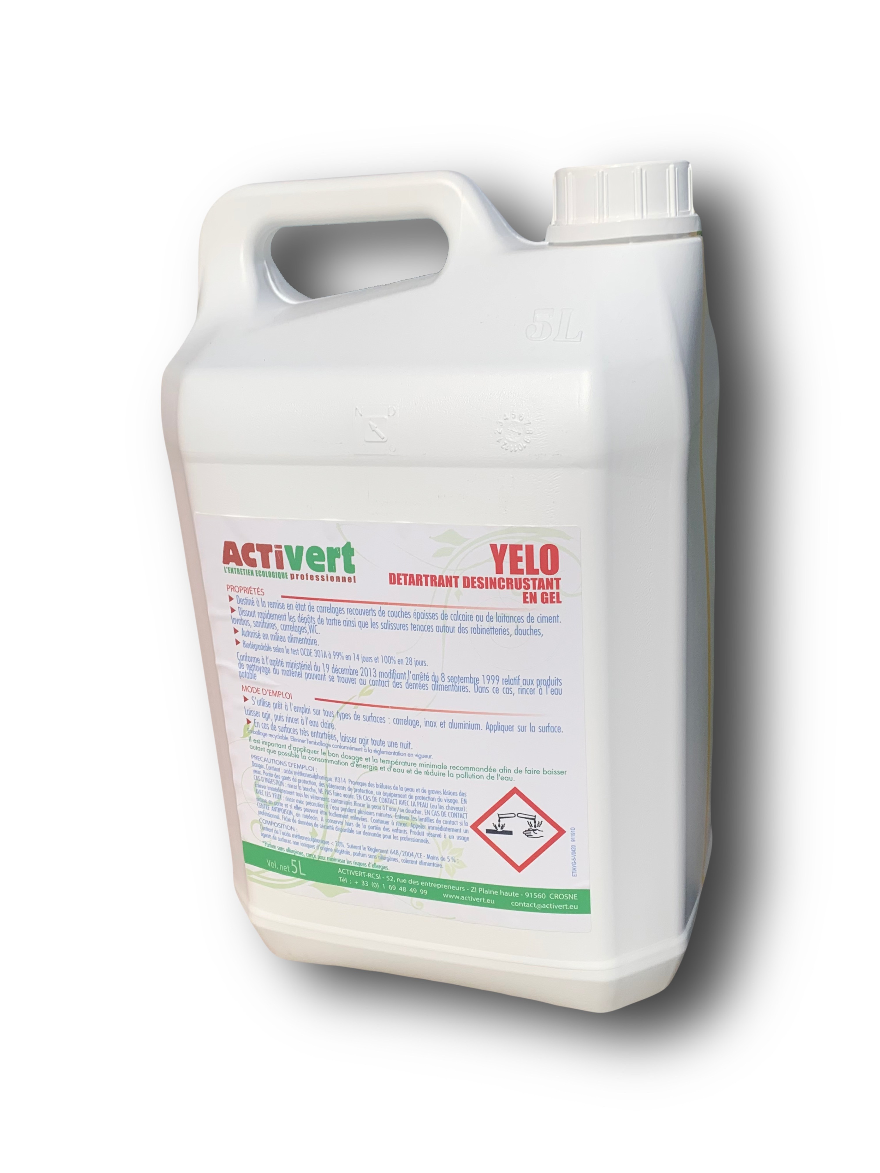 - Conditionnement professionnel : bidon de 5 L, adapté aux usages intensifs.