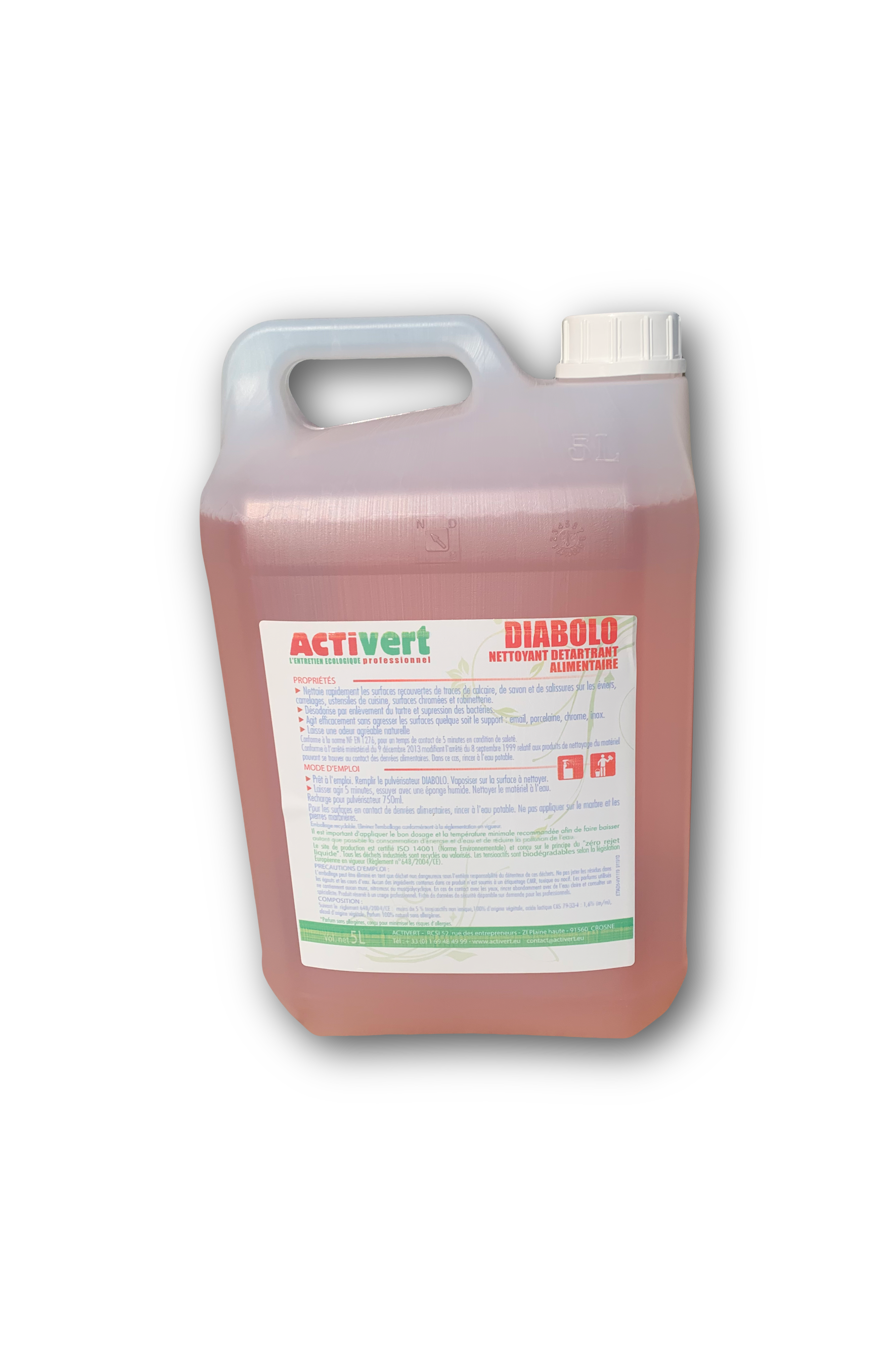 Le nettoyant DIABOLO ACTIDIA5 est la solution idéale pour un entretien complet, écologique et efficace des surfaces. Son action tout-en-un, sa conformité aux normes bactéricides et son respect de l'environnement en font un produit indispensable pour les professionnels exigeants.